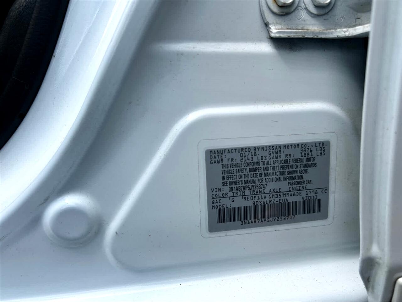Vehicle Inquiry for 2018 Nissan Sentra SR