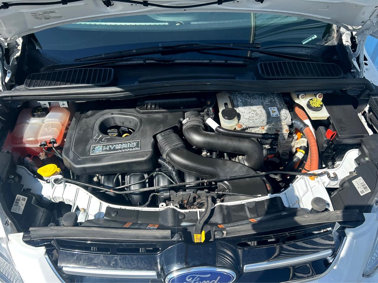 Step into the future with this sleek and stylish Oxford White 2017 Ford C-Max Hybrid. This innovative beauty seamlessly combines a 4 Cylinder Engine with a Gas/Electric Hybrid system, offering both power and efficiency. Take on the road with confidence as you cruise with Front Wheel Drive and precise handling thanks to the Aluminum Wheels. With Automatic Headlights leading the way, every drive is safe and secure. Stay entertained on the go with the AM/FM Stereo and Satellite Radio, while the Bluetooth connectivity keeps you connected. The Back-Up Camera makes parking a breeze, while the Remote Trunk Release adds convenience to your daily routine. Relax in the comfortable Cloth Seats and enjoy the convenience of Climate Control. Whether you're driving in the city or hitting the highway, this Ford C-Max Hybrid has everything you need for a fun and efficient ride. Let this hybrid marvel elevate your driving experience with its cutting-edge features and stylish design.